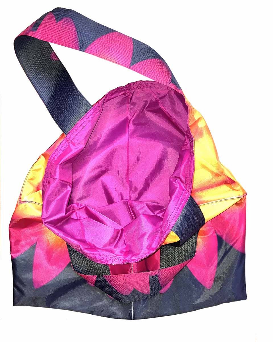 BADEN #19 KOMMT IN GELB-PINKEM BLUMENPRINT AUF SCHWARZ MIT EINER PINKEN INNENSEITE DAHER. DIE ZIERNÄHTE IN SCHWARZ ENTLANG DEN HENKELN GEBEN DER FRANZ TASCHE DIE NÖTIGE FESTIGKEIT. Das energiegeladene Unikat Baden #19 wird in einer pinken, wasserdichten Hülle mit Hotelverschluss im handlichen A5 Format zu Dir nach Hause geliefert. Regenschirme für FRANZ Taschen können Gebrauchsspuren aufweisen; sie sind Teil des FRANZ Taschen Designs.