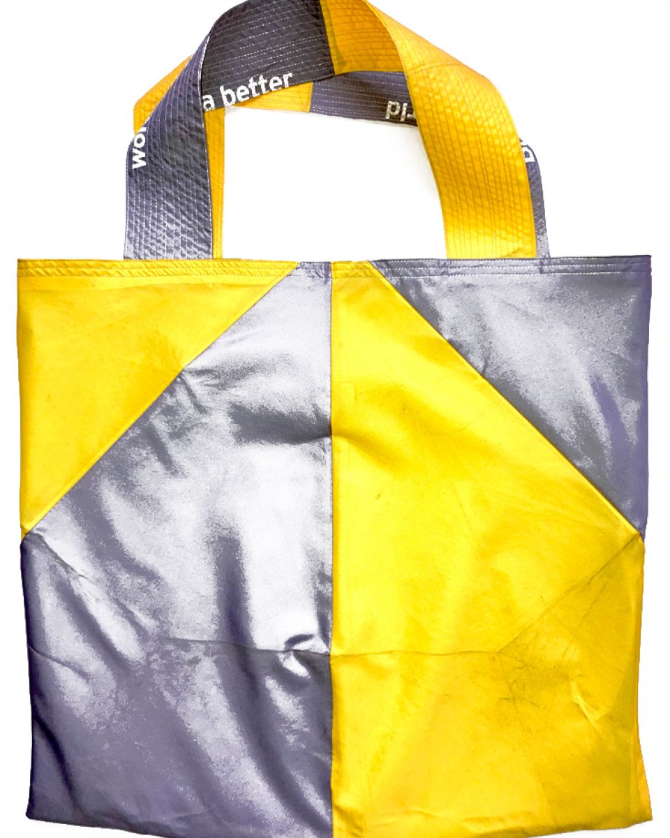 HANOI #13 KOMMT IN EINEM COOLEN GELB-GRAUEN RAINBOW MUSTER MIT EINER GELB-GRÜNEN INNENSEITE DAHER. DIE GRAUEN, MEHRSPURIGEN ZIERNÄHTE ENTLANG DEN HENKELN GEBEN DER FRANZ TASCHE DIE NÖTIGE FESTIGKEIT.