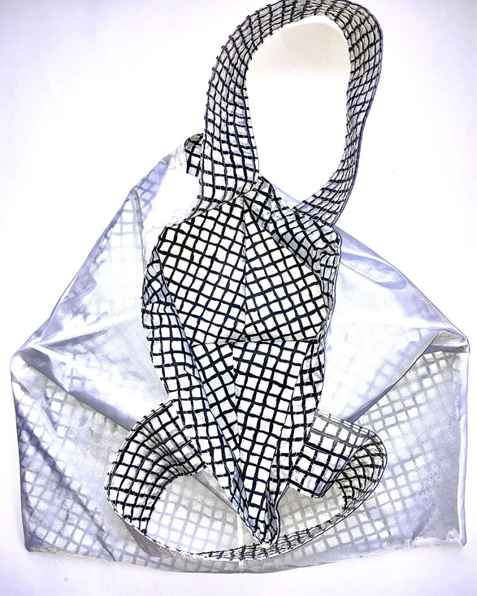 ZÜRICH #03 KOMMT  IN WEISS MIT EINER DURCHSCHIMMERNDEN SCHWARZ GEMUSTERTEN INNENSEITE DAHER.