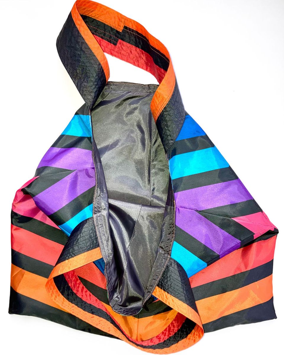 ZÜRICH #18 TRÄGT EIN MEHRFARBIGES STREIFENMUSTER MIT EINER DUNKELGRAUEN INNENSEITE. DIE MEHRSPURIGEN UND MEHRFARBIGEN ZIERNÄHTE ENTLANG DEN HENKELN GEBEN DER FRANZ TASCHE DIE NÖTIGE FESTIGKEIT. Das Unikat Zürich #18 wird in einer dunkelgrauen, wasserdichten Hülle mit Hotelverschluss, im handlichen A5 Format, zu Dir nach Hause geliefert. Regenschirme für FRANZ Taschen können Gebrauchsspuren aufweisen; sie sind Teil des FRANZ Taschen Designs.